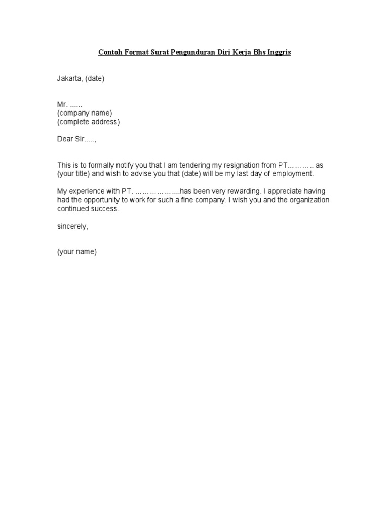 Terkadang ada banyak hal disaat kita bekerja di sebuah perusahaan atau instansi yang membuat kita. Penulisan surat pengunduran diri, karena termasuk surat resmi maka surat pengunduran diri ini harus ditulis berdasarkan kaidah yang telah ditentukan berikut ini adalah contoh surat pengunduran : Dalam dunia kerja, akan ada saat dimana kita harus. Berikut adalah beberapa contoh surat pengunduran diri kerja yang baik dan benar, semoga bisa menjadi bahan referensi untuk anda. We are a sharing community.